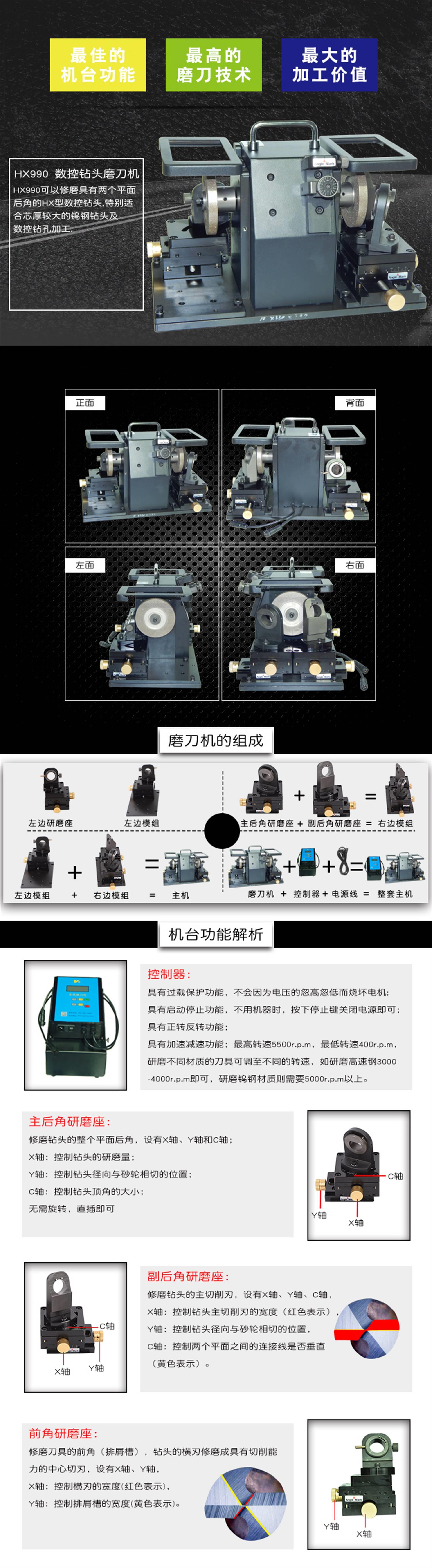 深孔钻头磨刀机,磨削3-13mm长刃钻头,适用于机械加工行业的深孔加工。